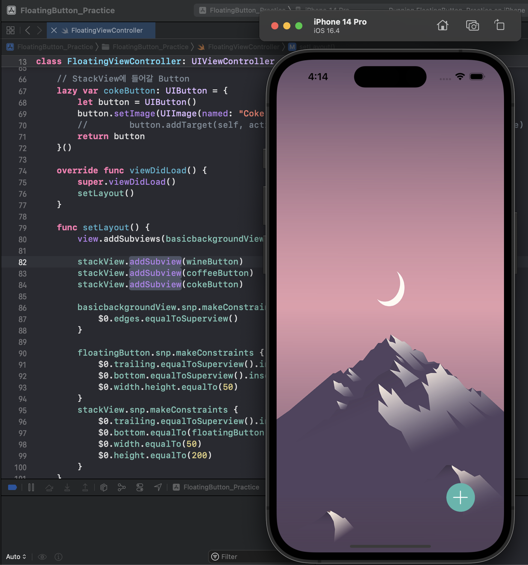 해당 뷰를 만들기 위해서는 StackView와 Floating Button에 관한